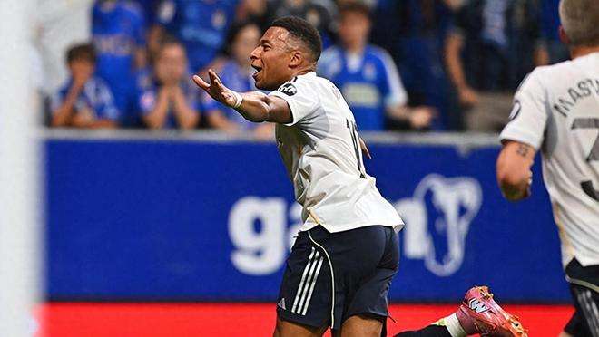 在對陣奧維耶多的比賽中,第37分鐘,居勒爾送出直塞,姆巴佩接球後冷靜變向,用右腳斜射破門,展現了世界級射手的素養。第83分鐘,他接維尼修斯助攻,一記貼地斬再次洞穿球門。僅兩分鐘後,他險些完成帽子戲法,但被門將神勇撲出。