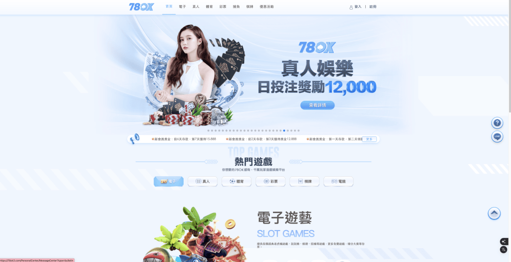 78OK娛樂城的遊戲選擇非常豐富,滿足了不同類型玩家的需求,以下分別介紹其主要遊戲種類: