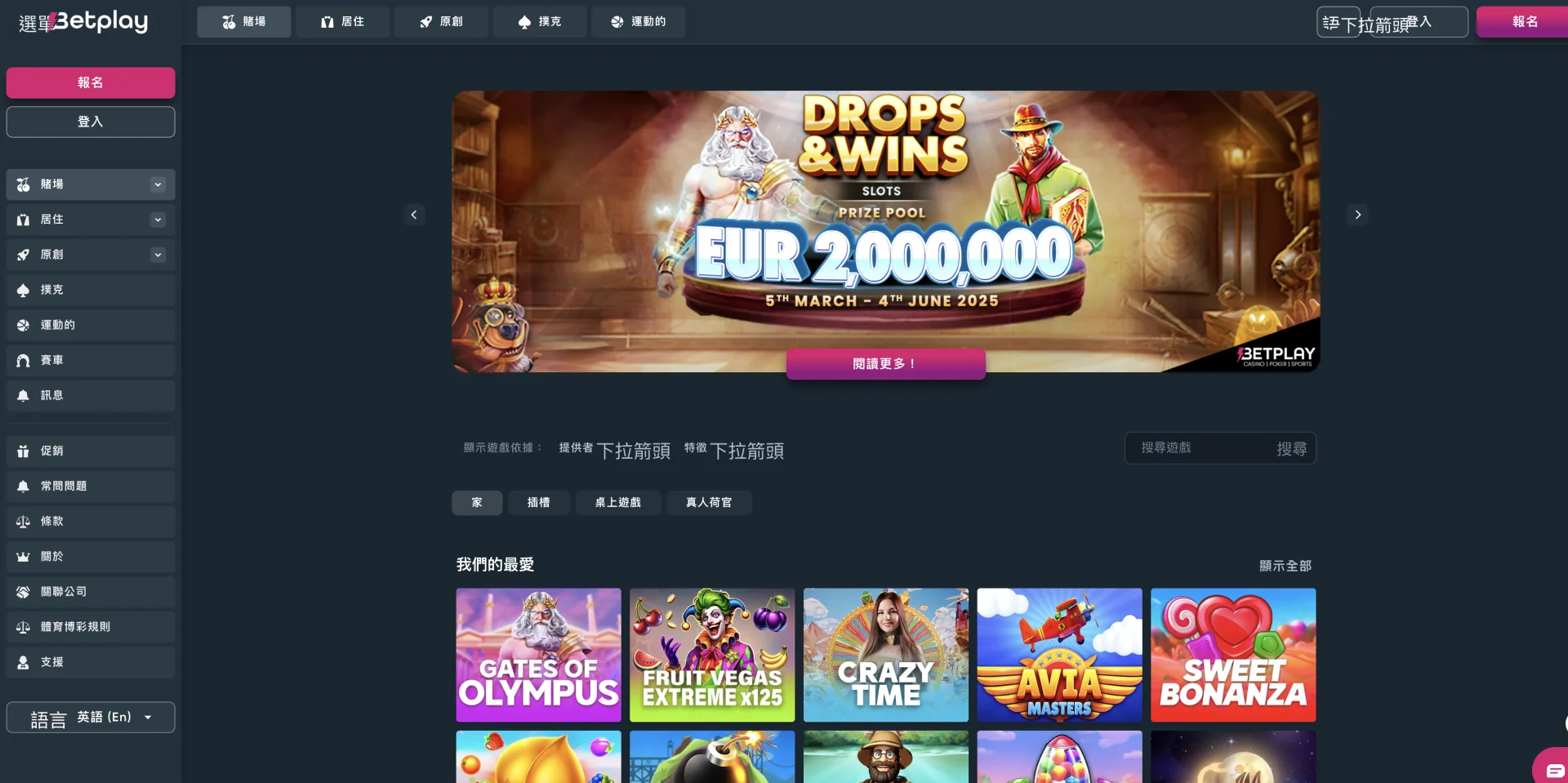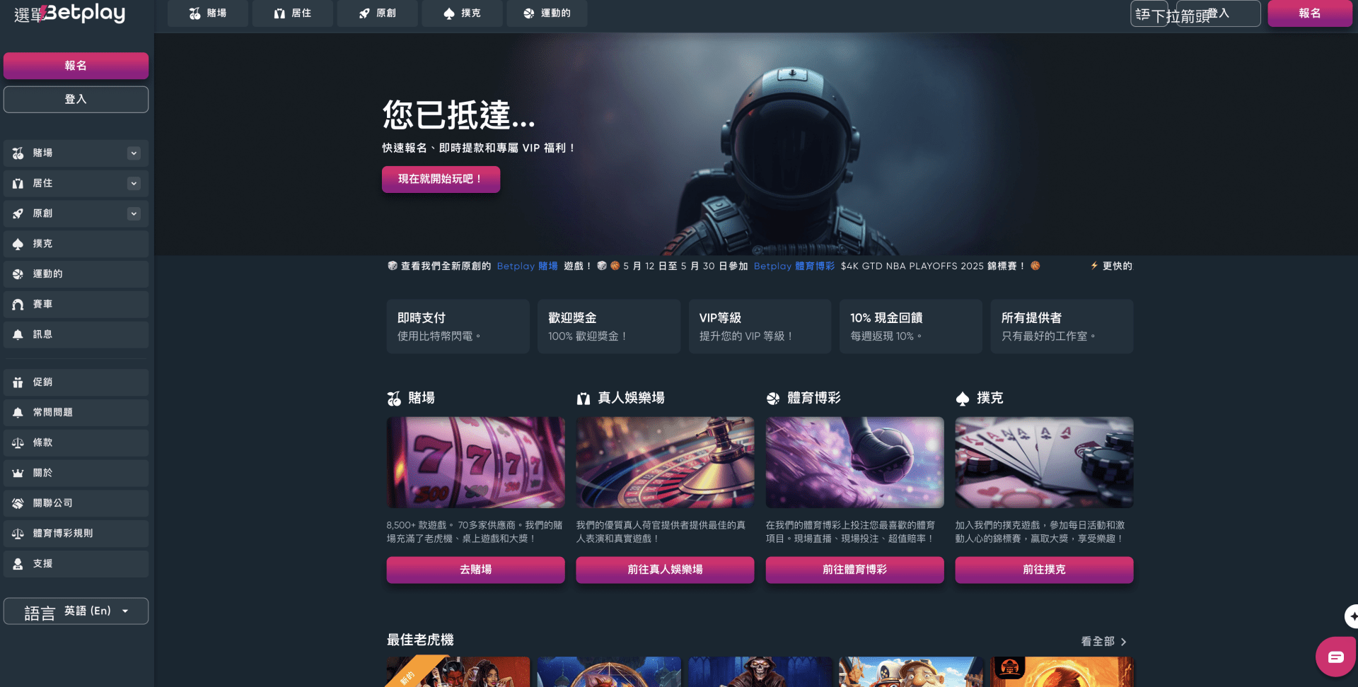 Betplay在线赌场以其廣泛而豐富的遊戲種類著稱,適合不同層次、偏好及需求的玩家。不論是老玩家還是新手,平台都能提供出色的選擇與體驗。