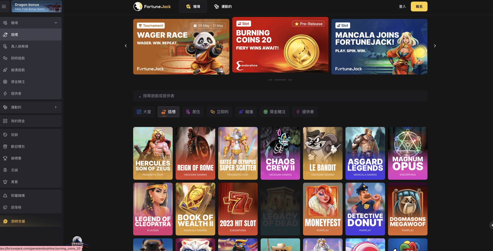 FortuneJack在線賭場內收錄來自NetEnt、Microgaming、Betsoft、Play’n GO等歐美主流廠商的老虎機,無論是經典三軸、五軸機型還是創新Megaways機制,均應有盡有。熱門機種如《Gonzo’s Quest》、《Starburst》、《Book of Dead》和《Bonanza》備受玩家推崇。除此之外,還有數百款不同主題的老虎機,包含冒險、奇幻、埃及、亞洲等元素,搭配各式紅利遊戲、免費旋轉、再觸發等高額獎勵玩法,提供玩家無窮驚喜。