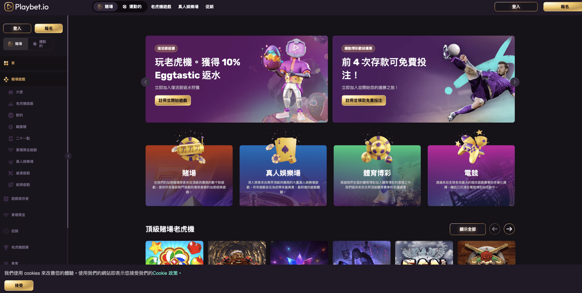 Playbet.io 提供了眾多令人耳目一新的遊戲,覆蓋了傳統賭場遊戲的各個範疇,同時加入了創新的加密貨幣遊戲設計。以下是其主要的遊戲分類: